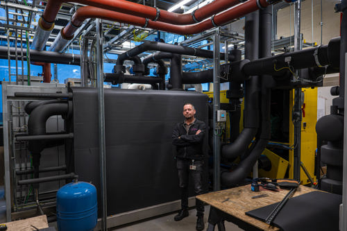 Vincent van Duijn (op de foto's) en Marco Volwater, medewerkers civiele techniek, hebben hier hard aan gewerkt. Vincent: ‘Het is vooruitstrevend om een bestaand ziekenhuis op deze manier duurzamer en aardgasvrij te maken. Dat zie je nog niet vaak in Nederland. Voor ons als civiele techniek was dit een uitdagend en bijzonder project!’
